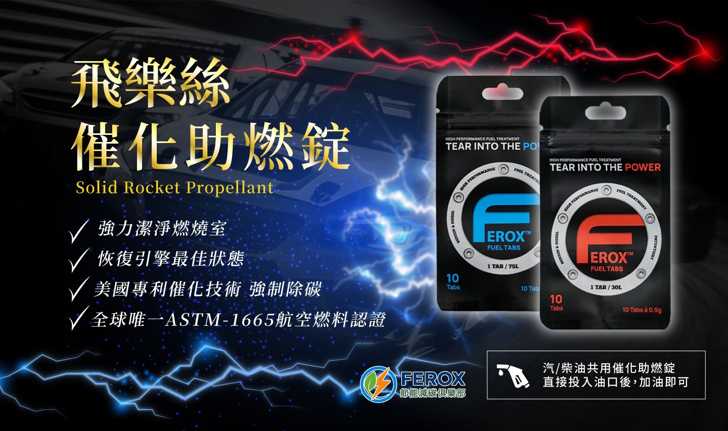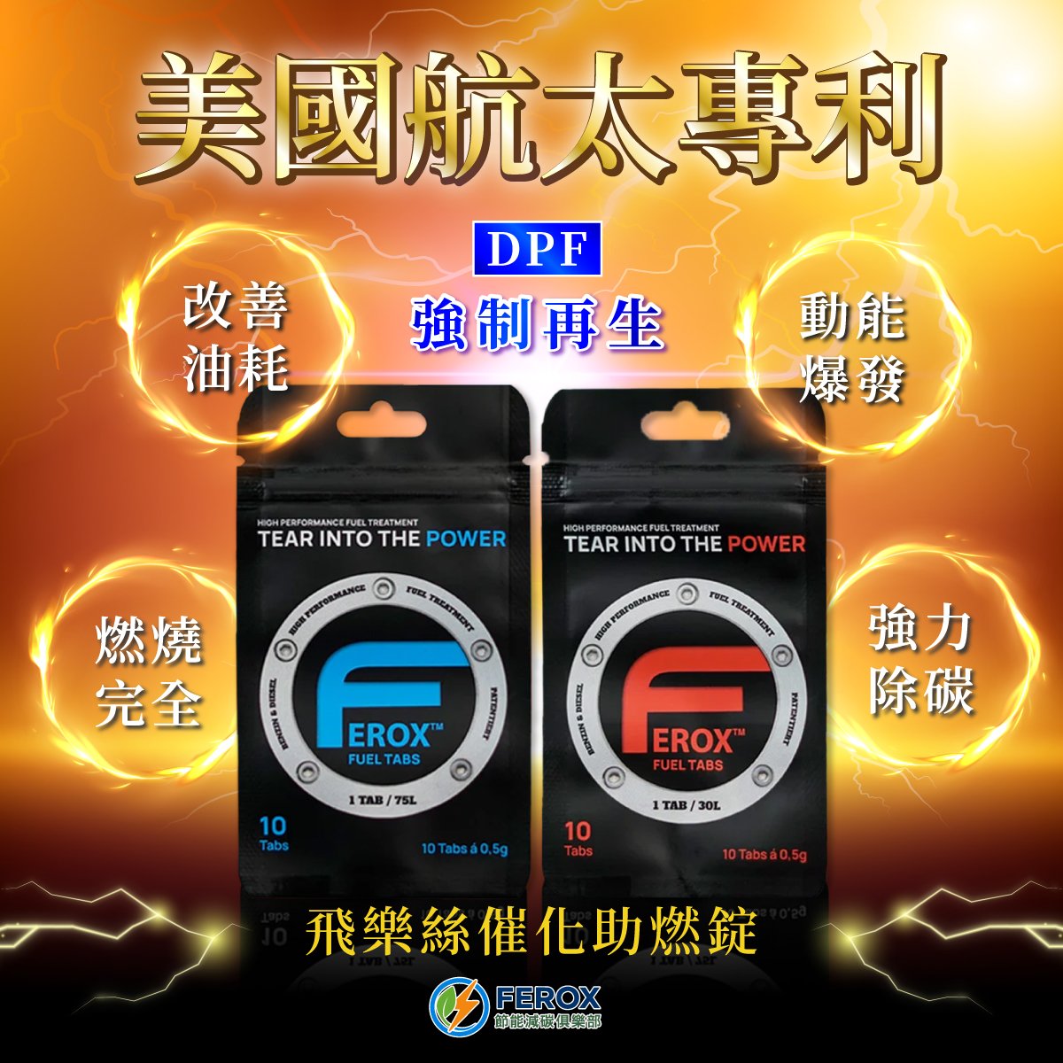 內容物:一包內含10顆催化助燃錠,每顆 Ferox 催化助燃錠可處理 35 公升汽油及柴油。
